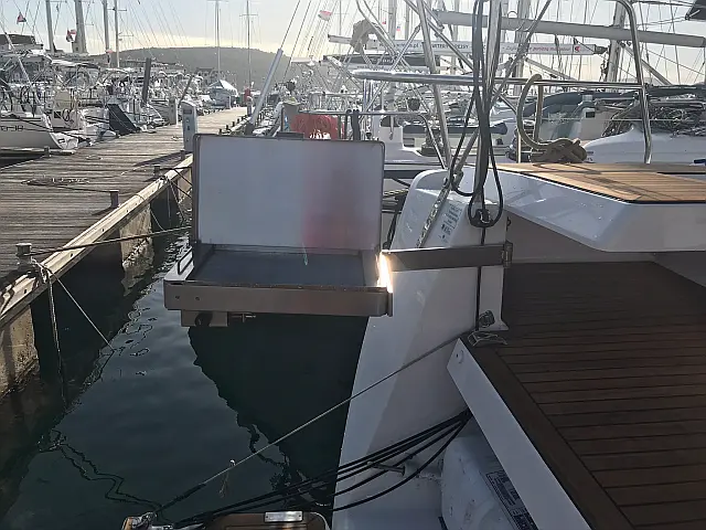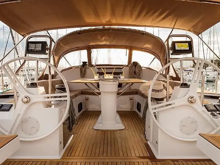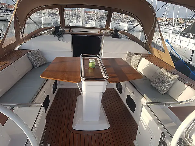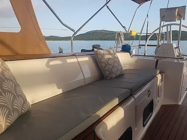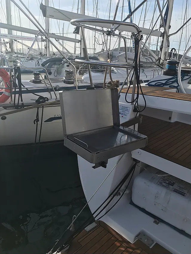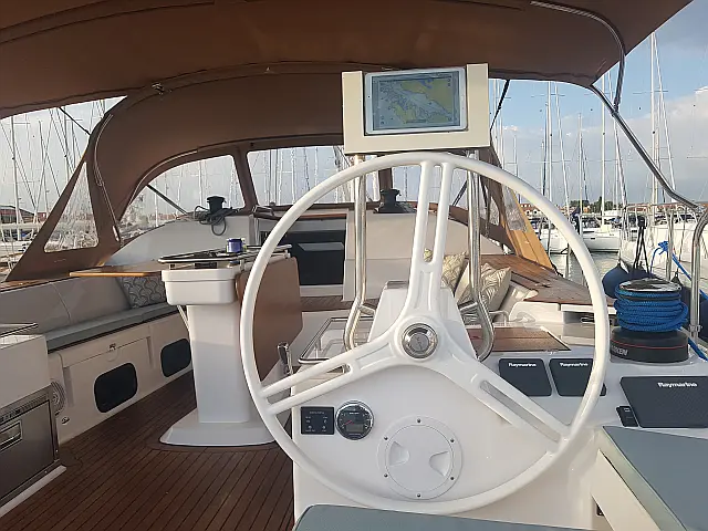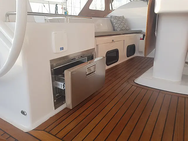 | Equipment: | Autopilot (true), Bimini, Bowthruster (true), Radio CD player, Chartplotter with GPS, Cockpit shower, Cockpit table, Cockpit speakers, Dinghy, Electric anchor windlass, Furling Genoa, Furling mainsail, Heating, Hot water, Refrigerator, Sprayhood, Steering wheel (2), Teak cockpit, VHF Radiotelephony, Wind instruments (true), freezer, solar panel, cockpit refrigerator, cockpit map navi, air condition (true), ice maker, |