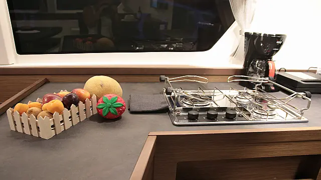 Камбуз: Cooker with oven & grill, Fridge with small freezer (3), Nespresso machine, Electric Filter coffee machine,