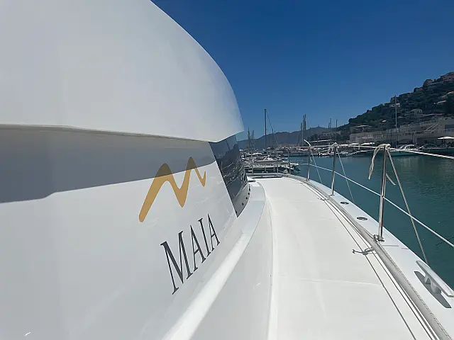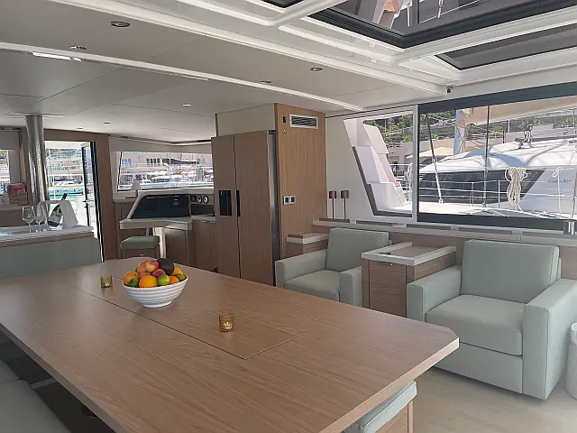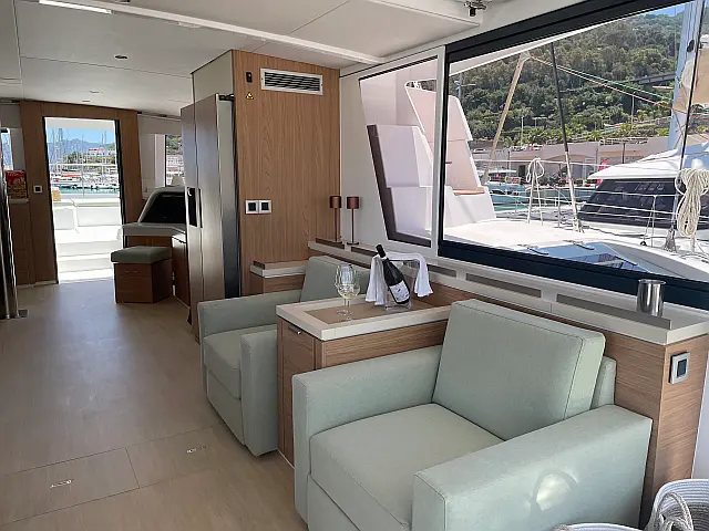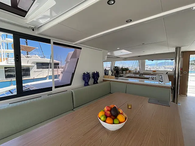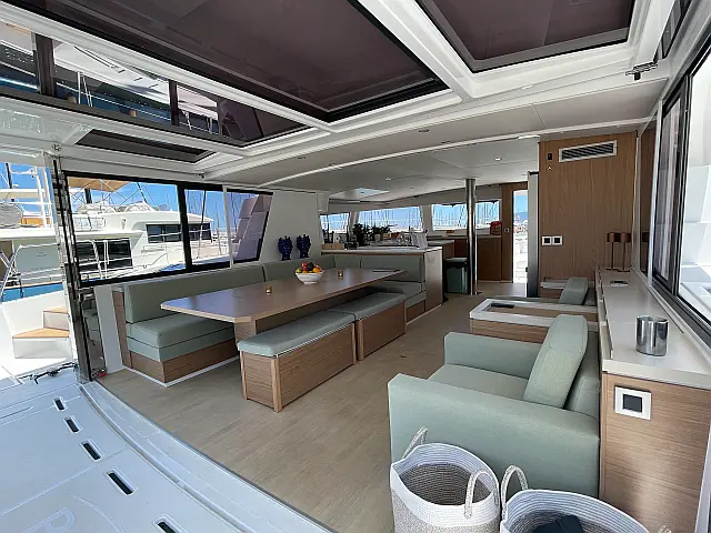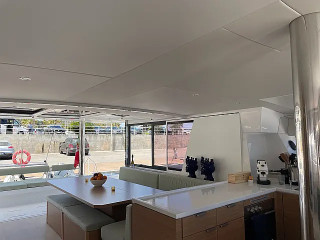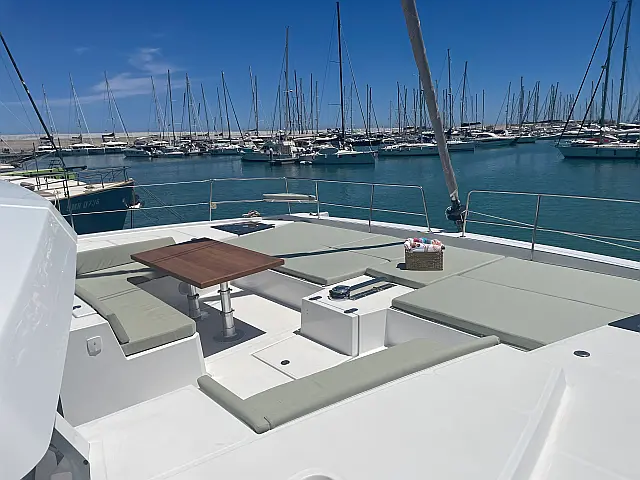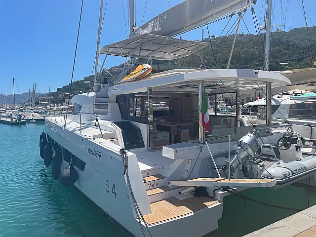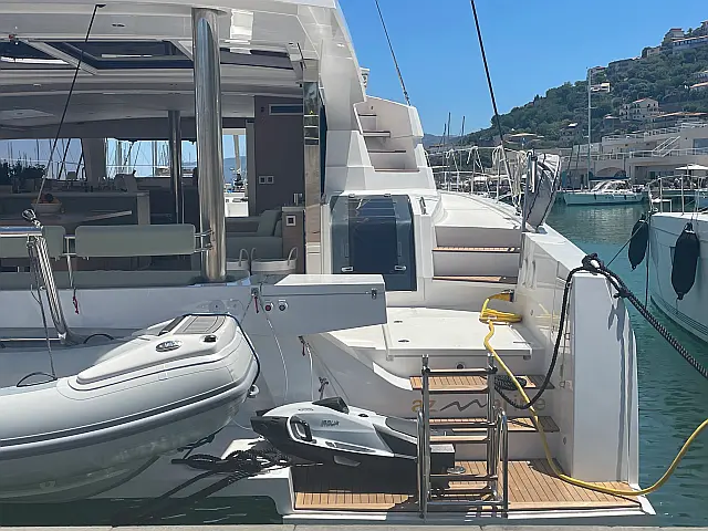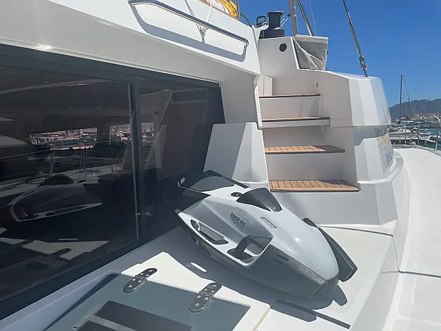 Equipment: Air conditioning, Water maker, Solar panel, Dishwasher, Washing machine, Chart plotter (null), Radar, GPS, AIS, Fish finder, SUP, Tender Highfield, Electric toilet, Smart TV, Cockpit speakers, Ice Maker, Nespresso Coffee machine, Cockpit cushions, Inverter,
