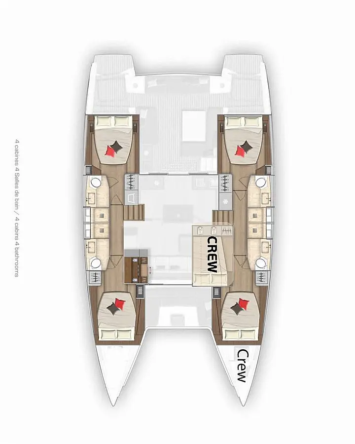 | Extra Comforts: | Air Condition in all cabins and salon (2021), Electric Toilets, Radio/CD, TV, USB socket, Watermaker, Wi-Fi, |