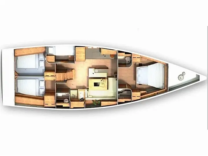| Deck: | Outdoor speakers, Sprayhood, Bimini, Bathing platform, Seat cushion, Dinghy, Outdoor shower, |
